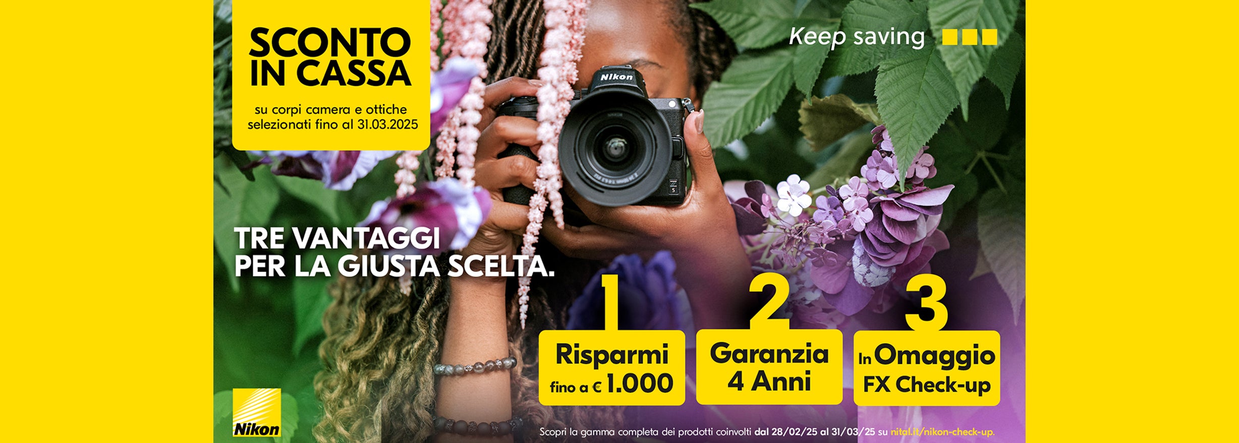L’elenco dei prodotti in promozione è disponibile nell’allegato Tabella Prodotti. Iniziativa valida dal 29 Agosto al 29 Settembre 2025 su acquisti Nikon nuovi ufficiali Italia contraddistinti dal s...